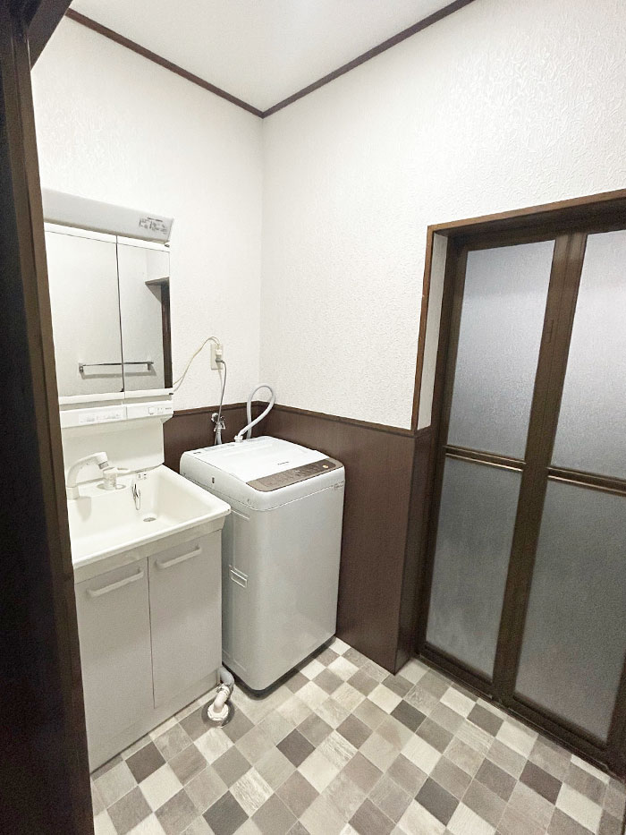 キッチン:クリナップ ラクエラ フローリング:イクタ プリオス介護とペット 勝手口:LIXIL 勝手口リシェント 壁:クトクコーポレーション Pプリント 洗面室腰壁:アイカ工業 タフウォール |