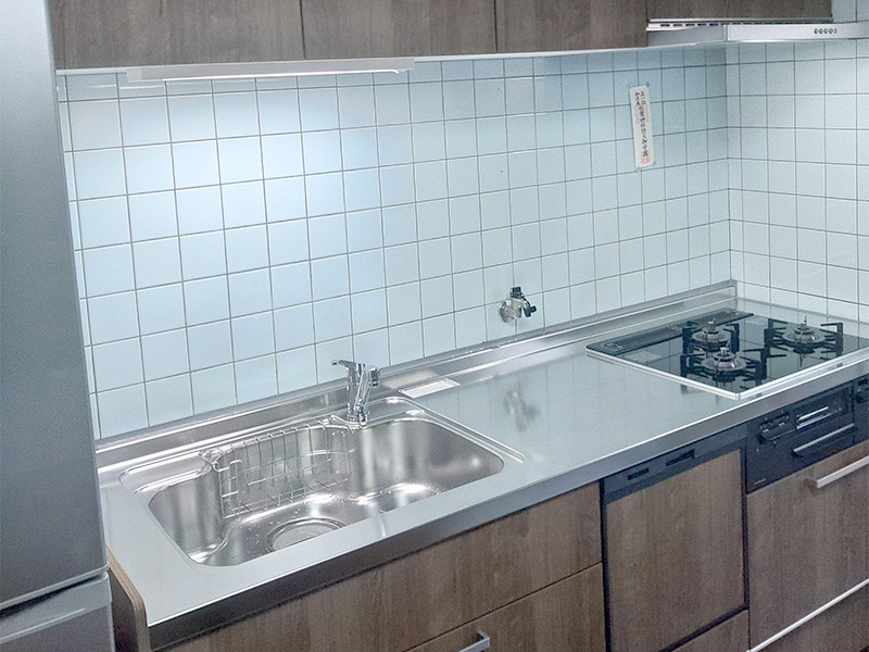今回はお客様のご希望により、壁のタイルをそのまま利用しキッチンを取り替えたいとのことだったので、商品選びや施工を慎重に行いました。